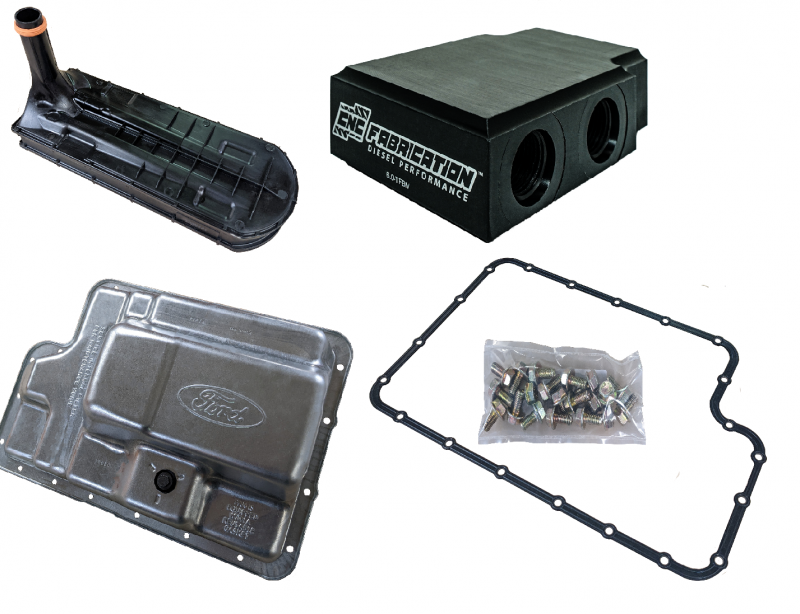 This kit is for those who want to install the Ford JOB2 5R110W transmission pan and filter found in the 2008.5-2010 6.4L Powerstroke.