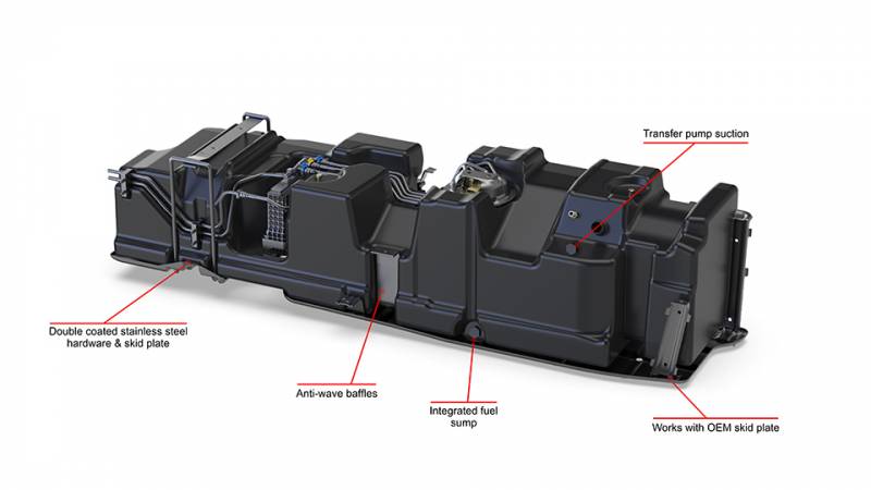 S&B's 60-gallon fuel tank directly replaces the OEM 34-gallon tank without any cutting, drilling, or special modifications. This makes for a trouble-free, faster installation process. S&B's replacement fuel tank holds 5 more gallons than competitor tanks, allowing you to save time, go futher, and get more out of your truck! Go big or go home!