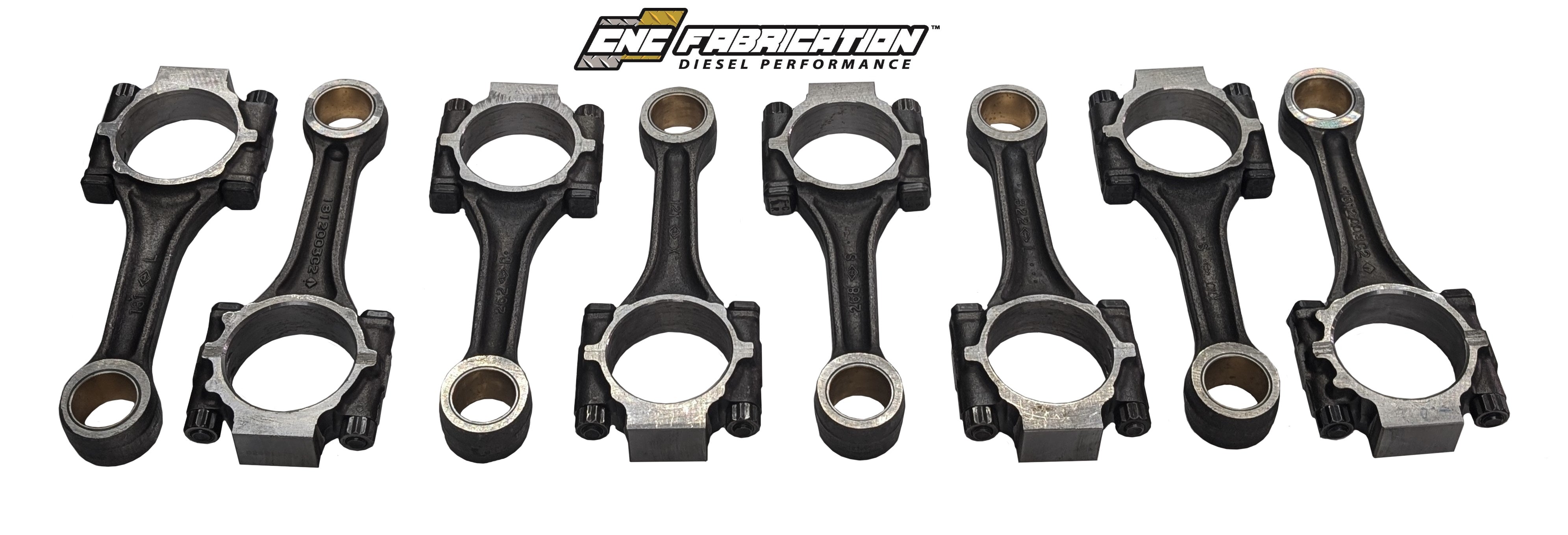 Introducing the CNC Fabrication reconditioned forged connecting rods. These are a great upgrade for your 01-03 7.3L Ford Powerstroke diesel engine. If you're looking to enhance performance while ensuring exceptional durability, these forged connecting rods are your go-to choice. These are also a great choice if you are rebuilding your 94.5-00 engine that may already have forged rods but may be out of tolerance and need refurbished.