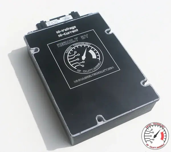 In addition to our normal rebuild process, our High-Voltage High-Current units get two additional tweaks. The first step increases the output voltage to the injectors from 110 volts to 140 volts. The second step increases the current output by about 20%. This activates the injector quicker, holds it on (poppet valve open) more firmly, and keeps it on just a bit longer. The result is snappier acceleration and a more responsive truck.